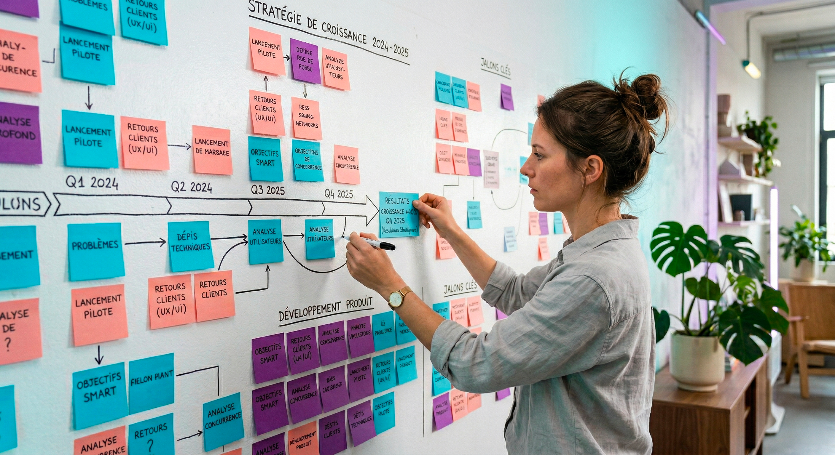 Un atelier structuré pour aligner les stakeholders sur la vision et les prochaines étapes produit.